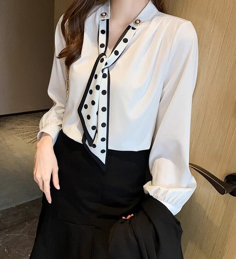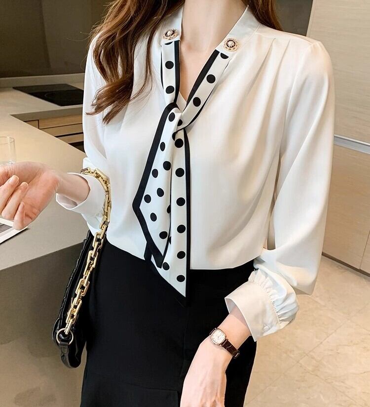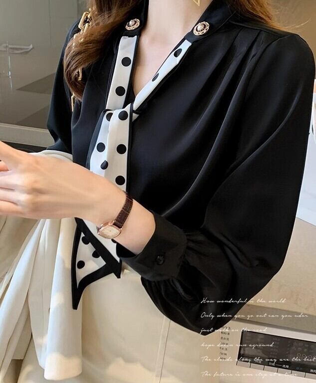 レディース トップス シャツ ブラウス プルオーバー ミディ ミドル 長袖 Vネック 襟付き ボウタイ ストレート フェミニン コンサバ 飾りボタン 大人可愛い きれいめ シンプル 上品 おしゃれ こなれ感 エレガント 存在感 都会的 清潔感 クリーン 無地 ドット柄 水玉 春 秋 授業参観 会議 ミーティング お呼ばれ ママ オフィス ビジネス OL 通勤 デート お出かけ レストラン ホテル 普段使い 着回し 清楚 S M L XL 2XL 大きいサイズ ゆったり 白 ホワイト 黒 ブラック ベージュ
