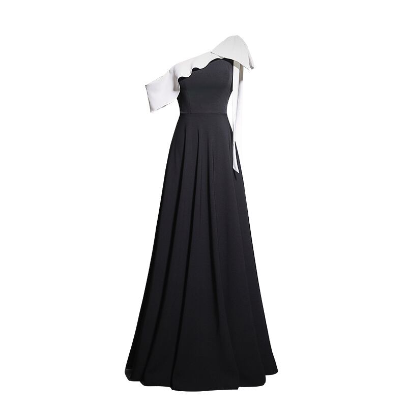 大人可愛い印象を持つレディースワンピースドレスです!ワンショルダーのデザインにトレンドのおおぶりなフリルが施され、エレガントながらもクールな印象を与えます。膝下までのロング丈とフレアシルエットが女性らしさを引き立て、都心でのデートや特別なお出かけにぴったり。モノトーンカラーは、シンプルかつ上品で、着回しにも優れています。