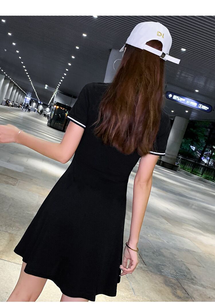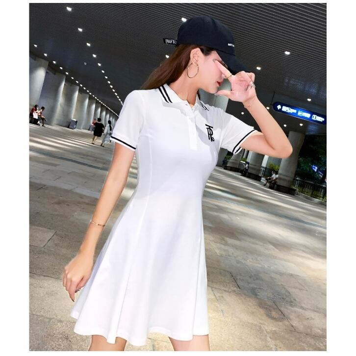 魅力的なフレアミニスカートが特徴の、半袖ワンピースが登場です!ラインとワンポイントプリントが絶妙に組み合わさり、スポーティーでトラッドな印象を与えます。二次会や披露宴、演奏会、発表会、舞台衣装、コスプレやクラブでのパーティーなど、様々なシーンで活躍する一着です!シンプルながらも上品で可愛いデザインは、大人の女性にぴったり。清楚でありながら、華やかさも兼ね備えた存在感が魅力です。