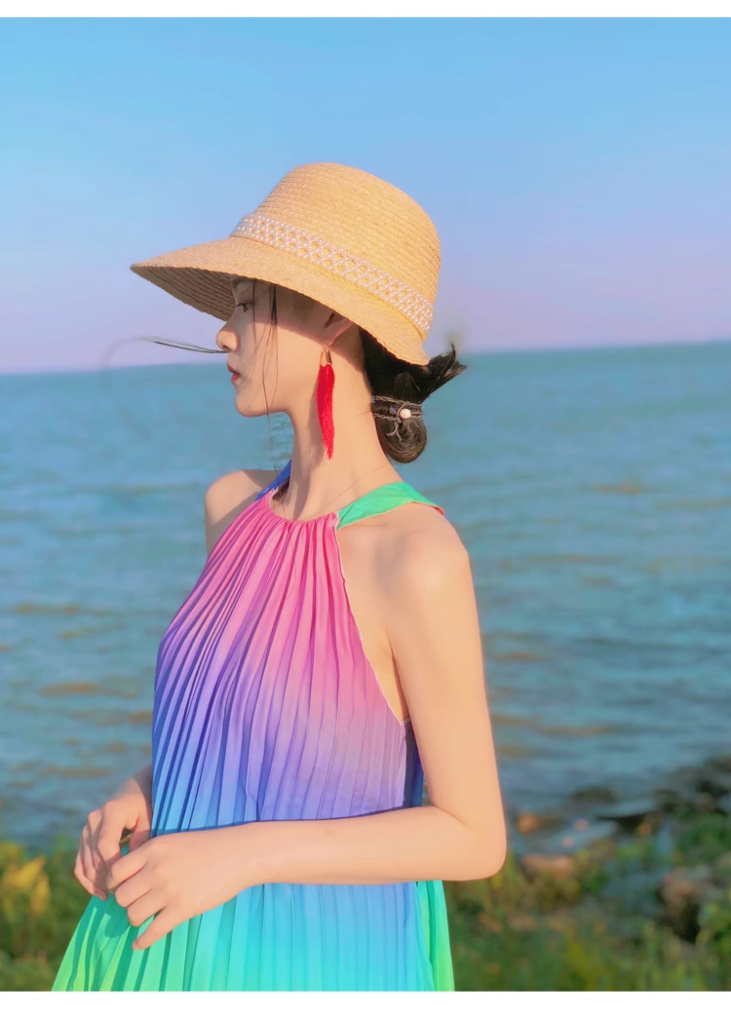 グラデーションが美しいプリーツスカートが魅力的なノースリーブドレスです!特別な日のパーティーや二次会、発表会、舞台など、幅広いシーンで活躍します。膝下の長さで、上品さと華やかさを共存させたデザインは、シンプルながらも存在感抜群。大人可愛いスタイルを演出し、あなたを主役級の魅力に引き立てます!