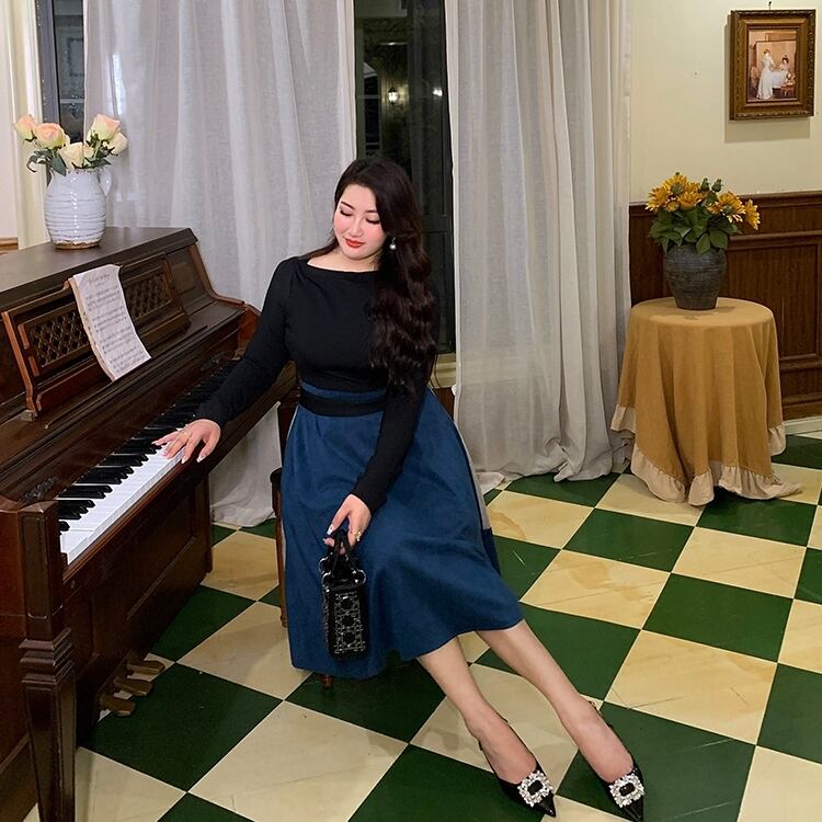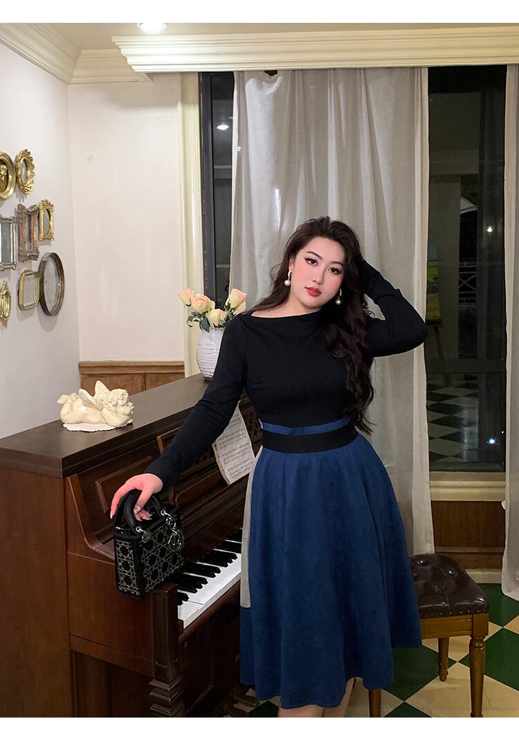 本商品はトップスとスカートで切り替えた魅力的なデザインで、長袖のボートネックが上品さを引き立てます。フレアスカートが美しいAラインシルエットを作り出し、体型カバーも叶えます。さらに、シンプルでありながら存在感のあるスタイルなので、普段使いにもぴったりです。