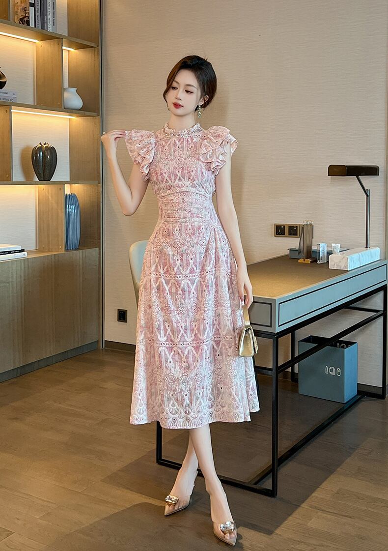 レディース ドレス ワンピース パーティー 結婚式 二次会 発表会 ステージ 舞台 衣装 コスプレ コスチューム 膝下 ミモレ ミディアム丈 半袖 クルーネック フレア 刺繍 可愛い きれいめ シンプル 大人可愛い 上品 おしゃれ かっこいい キュート ガーリー モード エレガント 主役級 存在感 クラシック 清楚 ゴージャス エレガント 華やか ナチュラル 花柄 パーティー イベント リゾート 旅行 ホテル ガーデン 体型カバー 美脚 脚長 高見え スタイルアップ 春 夏 S M L ピンク