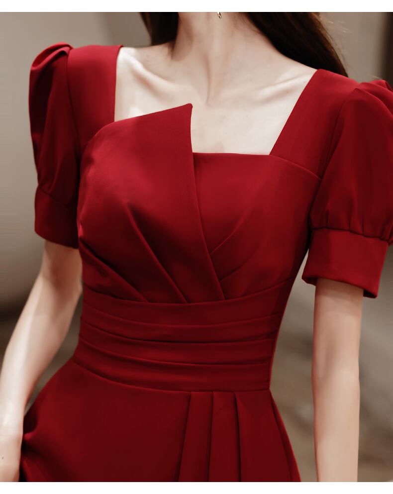 レディース ドレス ワンピース パーティー 披露宴 ステージ 舞台 衣装 コスプレ コスチューム 膝下 ミモレ 半袖 スクエアネック フレア Aライン 可愛い きれいめ シンプル カジュアル 大人可愛い 上品 おしゃれ かっこいい レトロ アジアン キュート クール エレガント 主役級 存在感 抜け感 クラシック 清楚 ゴージャス エレガント 華やか ナチュラル クラシカル イベント ホテル レストラン 体型カバー 高見え 格上げ スタイルアップ 春 夏 2XL 3XL S M L XL レッド