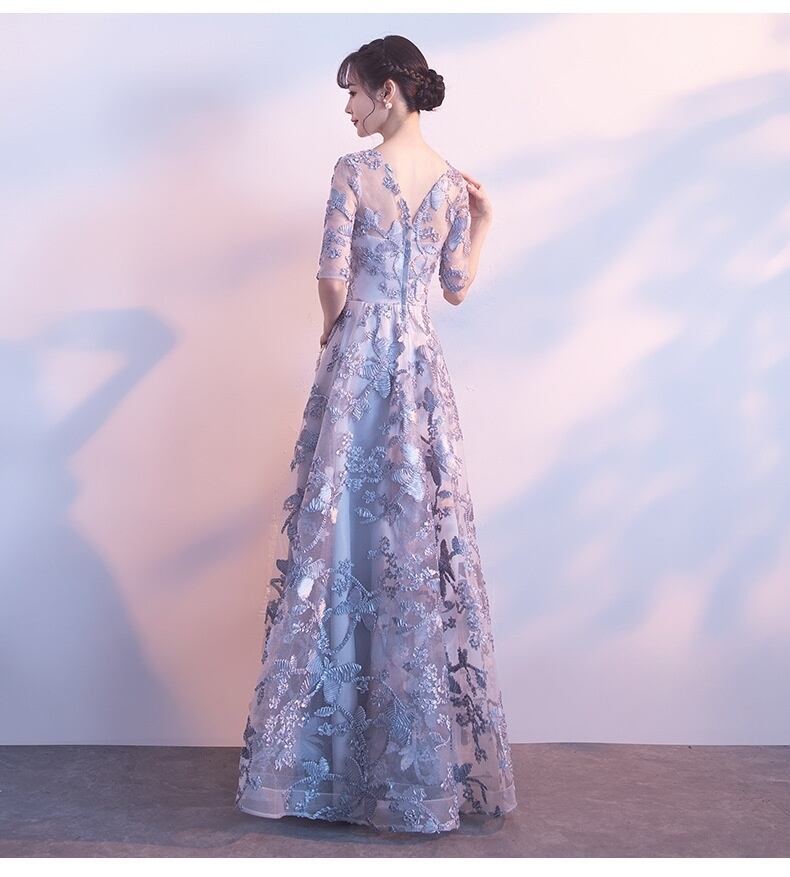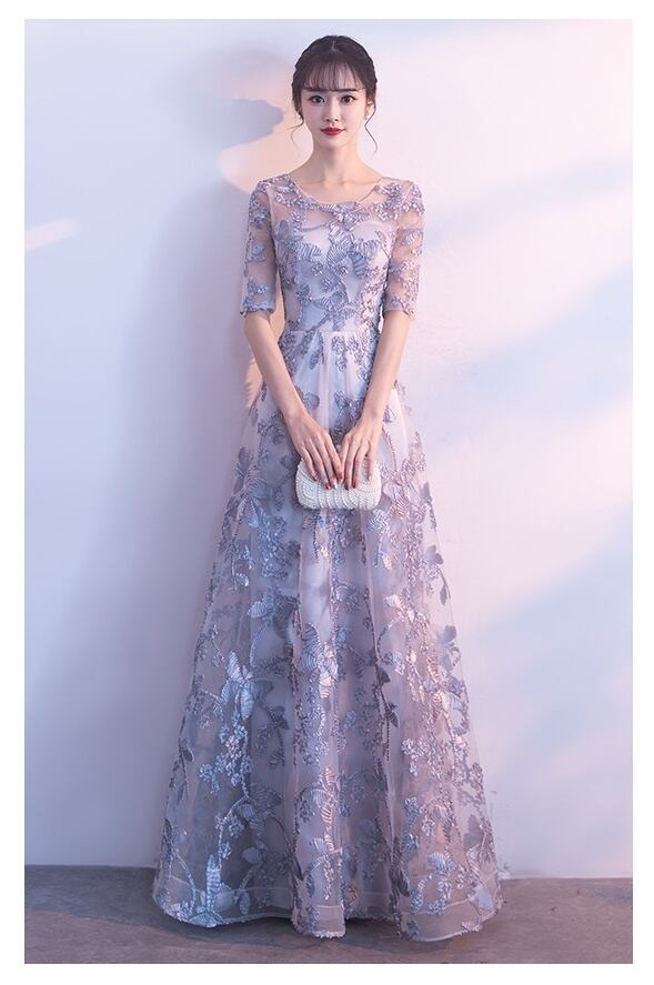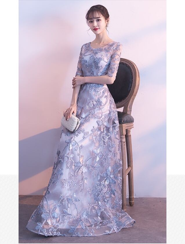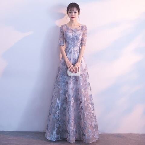 レディース ドレス カラードレス 膝下 ロング 5分袖 ラウンドネック 刺繍 チュール 透け感 可愛い きれいめ シンプル カジュアル 大人可愛い 上品 おしゃれ かっこいい キュート ガーリー モード エレガント 主役級 存在感 フォーマル クラシック 清楚 ゴージャス エレガント セクシー シック 華やか クラシカル ベーシック 爽やか パーティー イベント リゾート ガーデン レストラン 高原 体型カバー 美脚 脚長 高見え 春 秋 2XL S M L XL 体型カバー パープル シャンパン