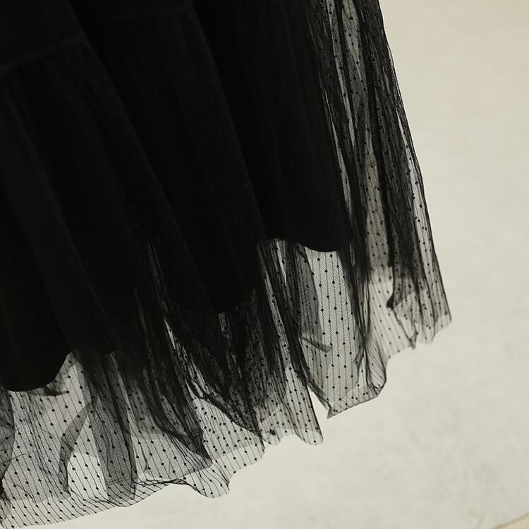 春秋にぴったりのエレガントでフェミニンなワンピースのご紹介です!ロング丈のAラインシルエットは、女性らしさを引き立てつつ、ぺザントスリーブとフリルスタンドカラーが魅力的なポイントです。高めのウエスト位置がスタイルアップを実現し、シースルーの透け感が清楚でロマンティックな雰囲気を演出。ドット柄がさりげない可愛らしさをプラスし、様々なシーンで活躍します。