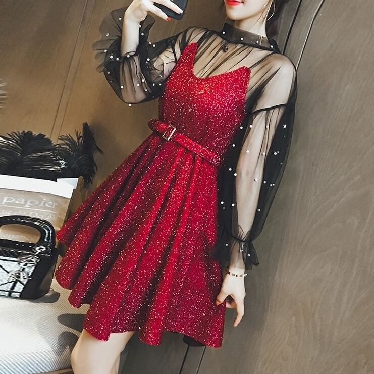 女性らしさを引き立てる、レディースドレスワンピースの登場です!デコルテと袖のメッシュ切り替えが絶妙な抜け感を演出し、セクシーかつエレガントな印象を与えます。パーティーやコスチュームなど、さまざまなシーンで主役級の存在感を発揮します。フレアなAラインシルエットが体型カバーにも最適で、上品かつキュートなおしゃれを楽しめます。