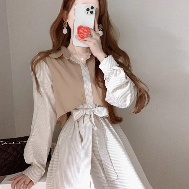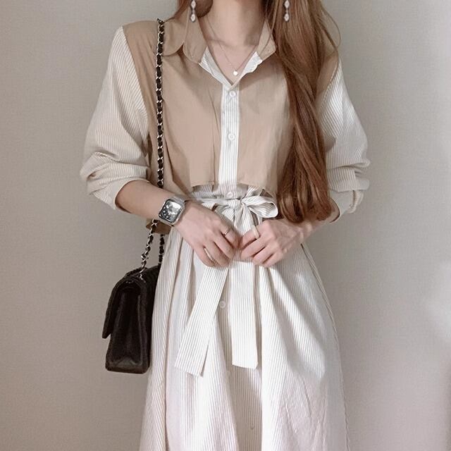 レディース ワンピース 膝下 ロング 長袖 襟付き 角襟 セミフレア スリム ウエストマーク 前開き ボタン かわいい 大人可愛い きれいめ シンプル カジュアル 上品 おしゃれ かっこいい こなれ感 ラフ ボーイッシュ ガーリー 個性的 クール エレガント ナチュラル 爽やか 可愛い ストライプ 春 秋 デート お出かけ リゾート 旅行 海 休日 バカンス ショッピング 韓国 コーデ 楽ちん 体型カバー 脚長 モテ 清楚 スタイルアップ S M L 黒 ブラック カーキ ベーシックカラー 大人カラー