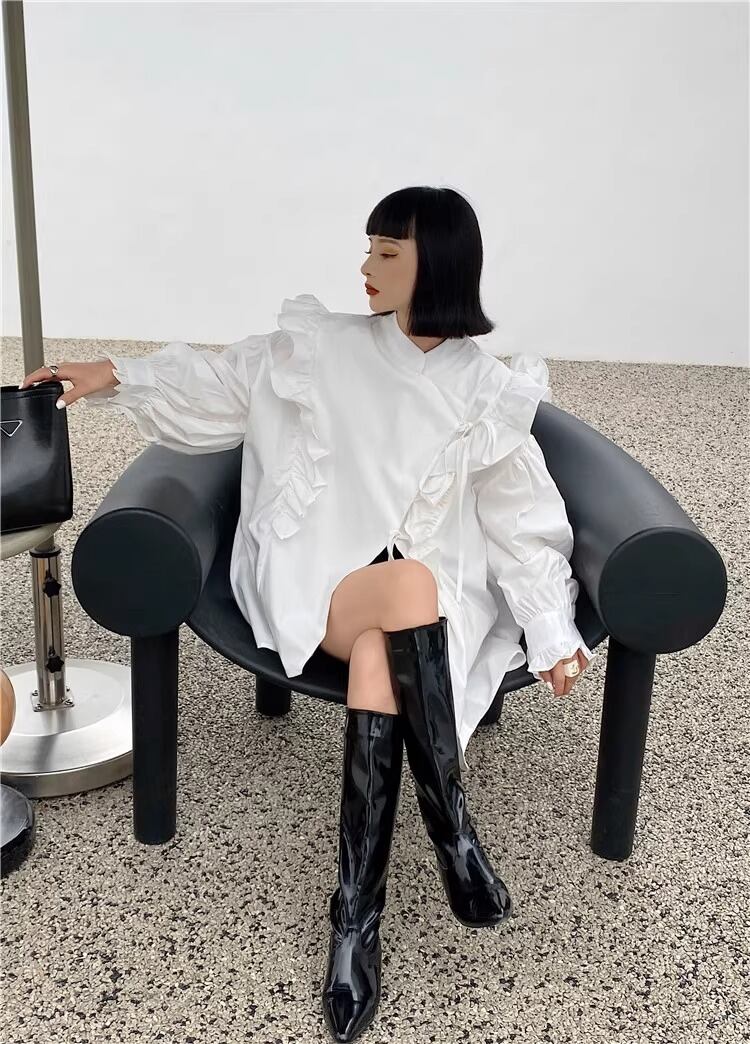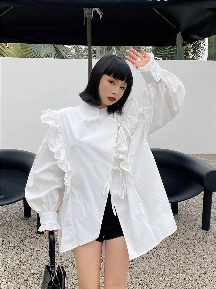 レディース トップス シャツ ブラウス ロング 長袖 ボリューム袖 ワイド フリル かわいい きれいめ シンプル カジュアル おしゃれ かっこいい レトロ こなれ感 ラフ ボーイッシュ ルーズ 個性的 クール モード系 モダン 存在感 ワイルド セクシー 色気 シック 可愛い 無地 春 秋 デート お出かけ 旅行 女子会 休日 ショッピング コーデ 楽ちん 体型カバー 普段使い モテ インスタ映え コスチューム 衣装 フリーサイズ 白 ホワイト 黒 ブラック モノトーン ベーシックカラー 大人カラー