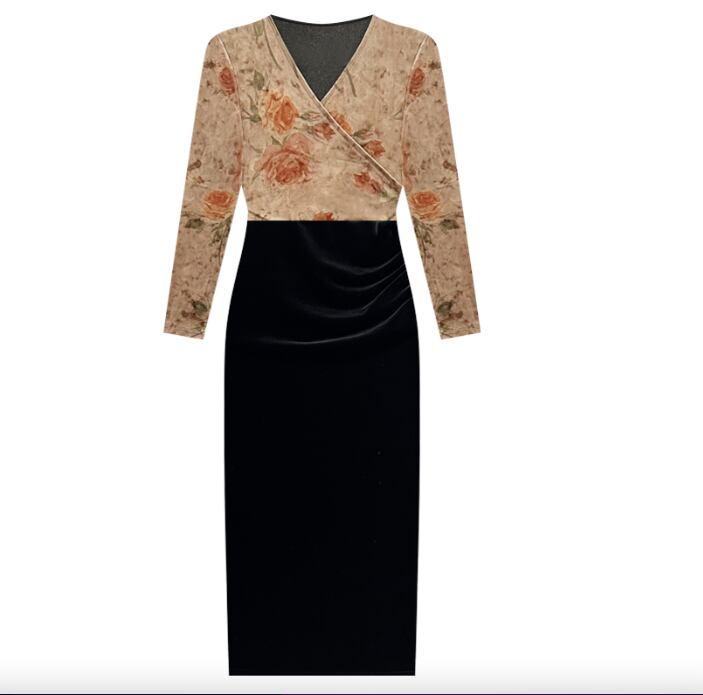 レディース ワンピース ドレス 膝下 ミモレ ミディ 長袖 Vネック カシュクール 襟なし タイト スリム ストレート Iライン 切り替え ドッキング ボディコンシャス ハイウエスト 切り替えデザイン 配色 大人可愛い きれいめ レトロ エレガント モダン ラグジュアリー セクシー 色気 中華風 花柄 フラワー 春 秋 同窓会 お呼ばれ ママ デート お出かけ レストラン 休日 ショッピング 脚長 普段使い S M オレンジピンク