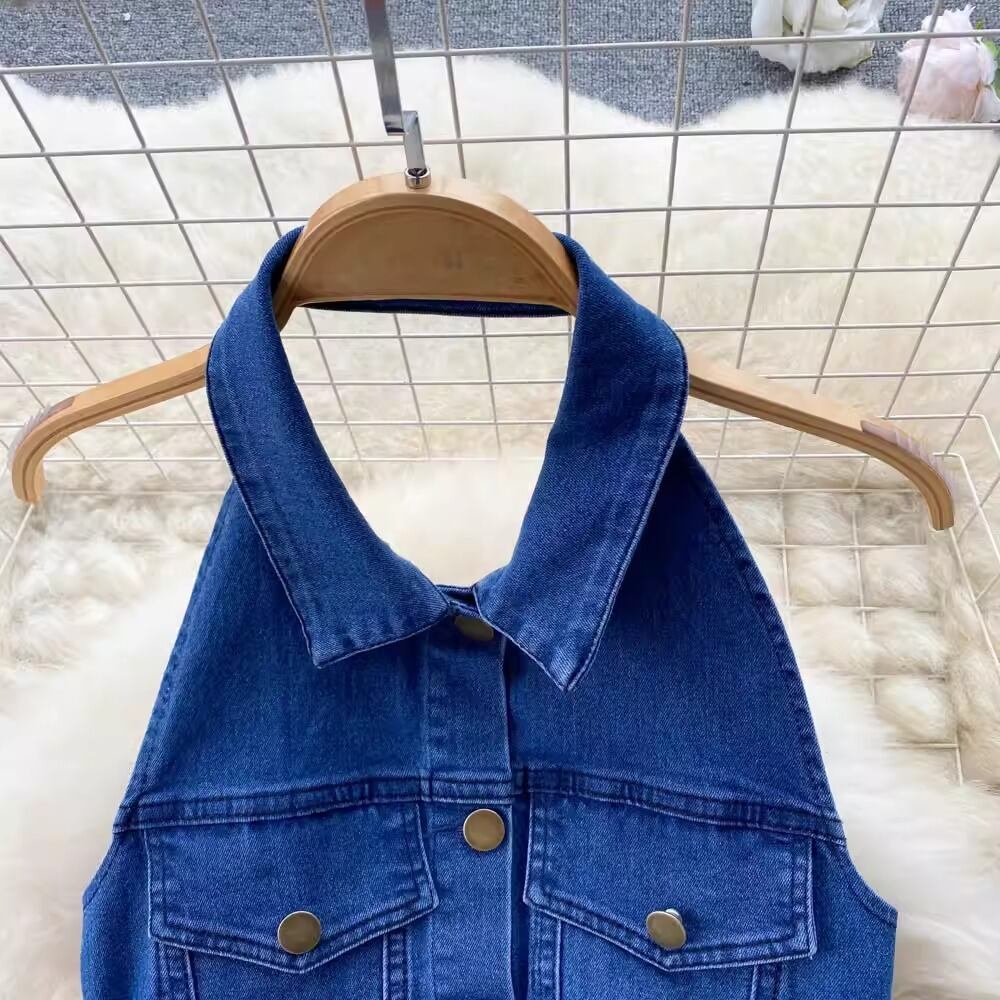 レディース ワンピース デニム ホルターネック 角襟 Aライン 背中開き ベルト ウエストマーク ポケット 前開き ボタン かわいい 大人可愛い きれいめ シンプル カジュアル 上品 おしゃれ かっこいい こなれ感 ラフ ボーイッシュ クール アクティブ ナチュラル セクシー 爽やか 無地 春 夏 ママ デート お出かけ 旅行 海 公園 女子会 休日 バカンス ショッピング コーデ 楽ちん 体型カバー 脚長 普段使い モテ 清楚 スタイルアップ 肌見せ S M L ゆったり ゆる ブルー ベーシックカラー