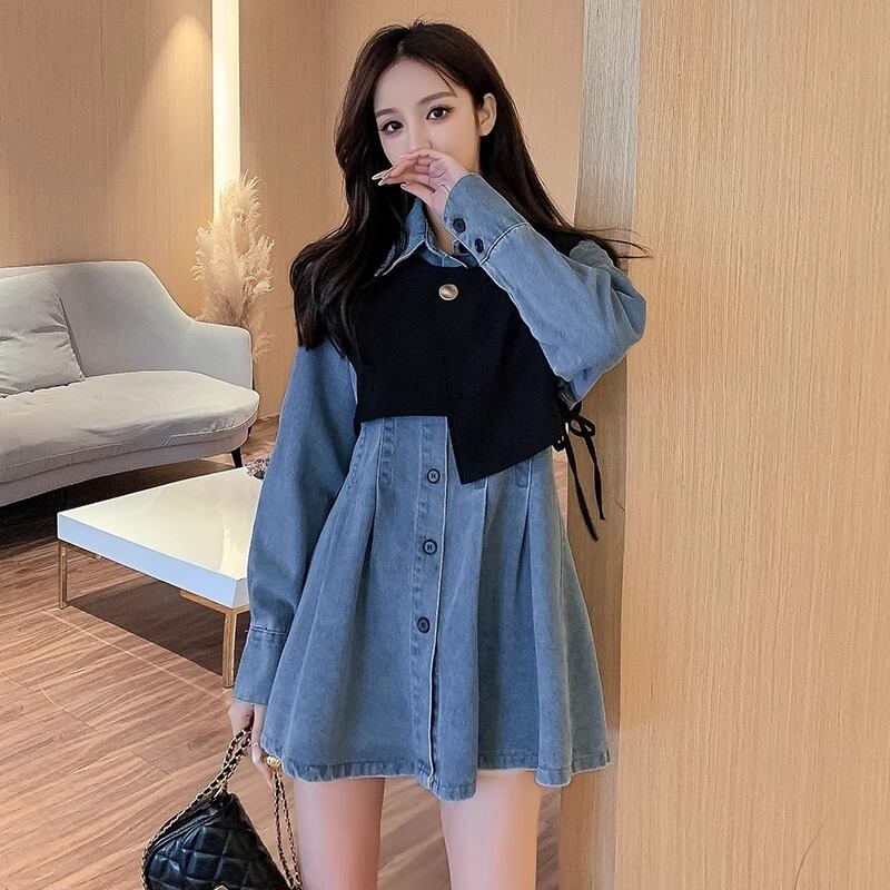 レディース ワンピース ベスト セットアップ デニム ミニ ショート 膝上 長袖 角襟 フレア スリム Aライン ウエストマーク 前開き ボタン かわいい 大人可愛い きれいめ シンプル カジュアル 上品 おしゃれ かっこいい こなれ感 クール ナチュラル 無地 春 秋 デート お出かけ 旅行 休日 バカンス ショッピング コーデ 楽ちん 体型カバー 美脚 脚長 モテ 清楚 スタイルアップ 肌見せ 高見え S M L XL 2XL 3XL 4XL 小さいサイズ 大きいサイズ プラスサイズ ベーシックカラー