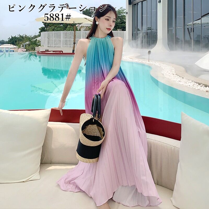 レディース ワンピース サンドレス ミモレ ロング マキシ 袖なし ノースリーブ フレア Aライン 裾ワイド ティアード フェミニン プリーツ ウエストマーク ハイウエスト かわいい 大人可愛い 上品 こなれ感 エレガント 抜け感 爽やか 華やか センシュアル 無地 花柄 フラワー グラデーション 春 夏 リゾート 旅行 海 プール ビーチ バカンス 楽ちん スタイルアップ 肌見せ 涼しい リラックス S M L XL フリーサイズ ピンク オレンジ ブルー アプリコット グリーン パープル マルチカラー