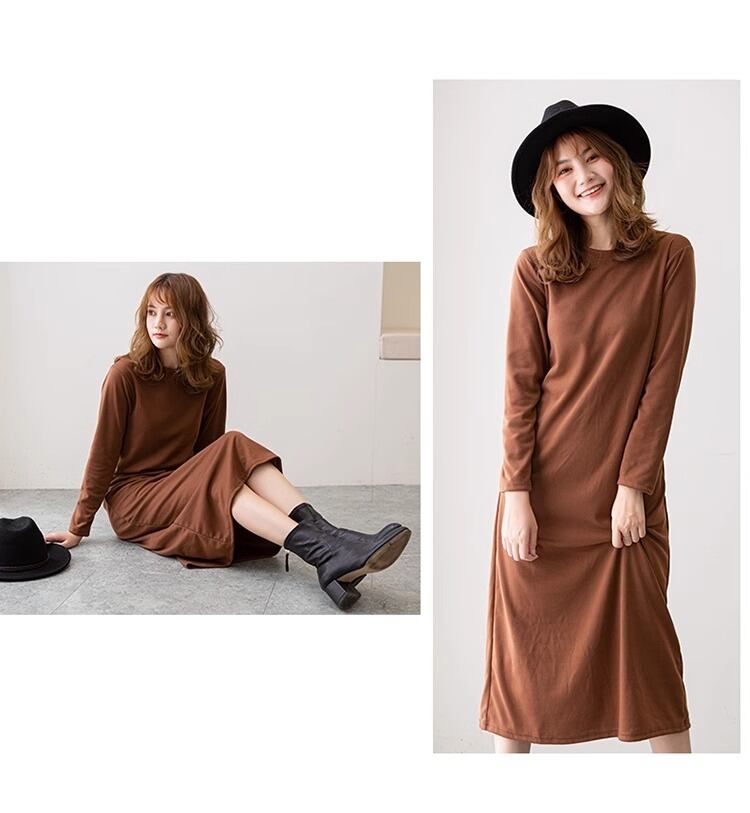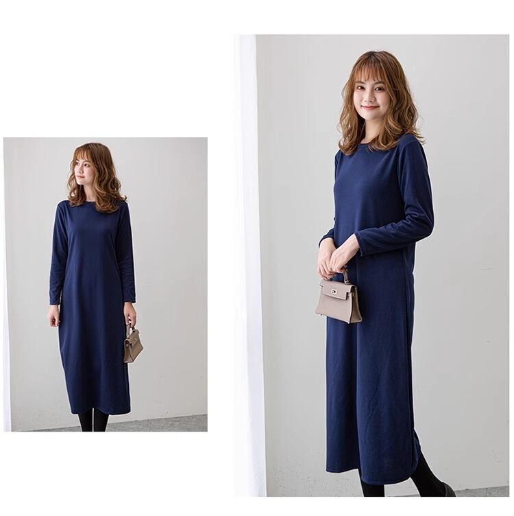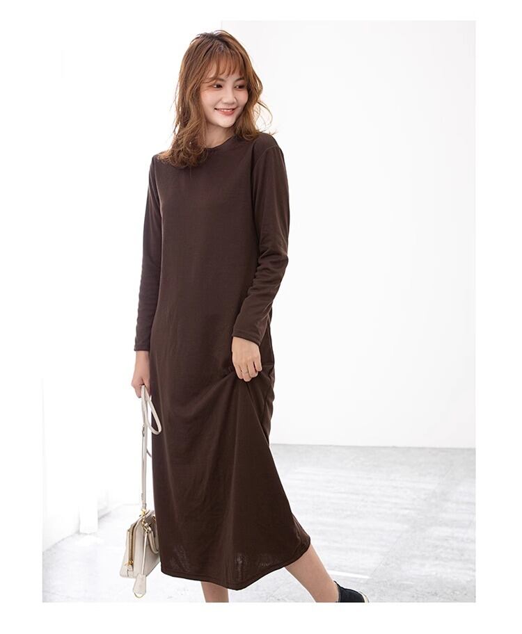 大人可愛いスタイルを叶える、ロング丈のワンピースです!長袖のラウンドネックデザインは、上品でいてカジュアルな雰囲気を演出。ストレートシルエットが体型を美しくカバーし、楽ちんでリラックスできる着心地ながらもおしゃれな装いを提供します。デートやお出かけ、旅行、ショッピングなど、さまざまなシーンで活躍すること間違いなし!シンプルな無地デザインは、どんなコーディネートにも合わせやすく、清潔感たっぷりです。