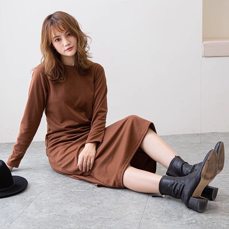 レディース ワンピース 膝下 ロング アンクル丈 長袖 ラウンドネック ストレート かわいい 大人可愛い きれいめ シンプル カジュアル 上品 おしゃれ こなれ感 ラフ ルーズ クール 抜け感 ナチュラル 可愛い 清潔感 無地 秋 冬 ママ マタニティ デート お出かけ 旅行 公園 休日 ショッピング コーデ 楽ちん 体型カバー 普段使い モテ 清楚 定番 スタイルアップ リラックス M L XL ゆったり ゆる ブラック ブラウン カーキ ネイビー 緑 グリーン ベーシックカラー 大人カラー 秋カラー