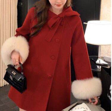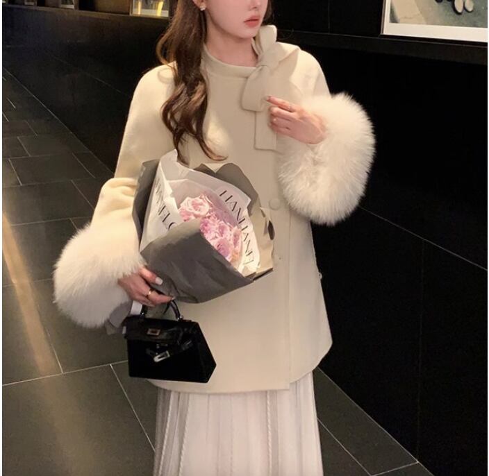 レディース コート ハーフ ミドル 長袖 カフスリーブ ドロップショルダー スタンドカラー りぼんタイ セミフレア Aライン フェミニン リボン 異国風 ボタン 切り替えデザイン ファー かわいい 大人可愛い きれいめ 上品 レトロ 主役級 キュート ラグジュアリー クラシカル ロマンティック 華やか 可愛い リュクス 無地 冬 デート お出かけ レストラン 休日 ホテル ショッピング 楽ちん 暖かい 体型カバー モテ XS S M L ゆったり 白 黒 ピンク レッド