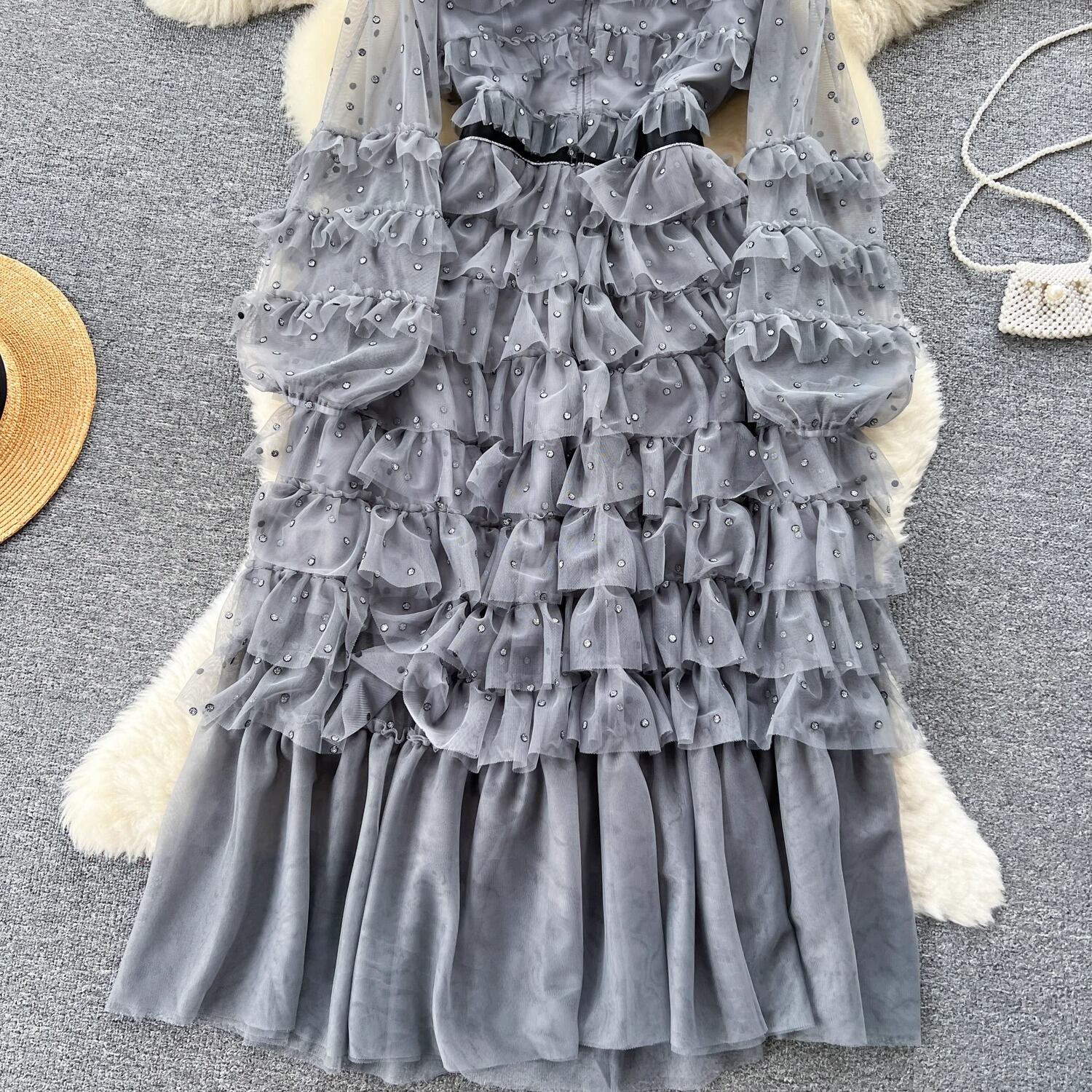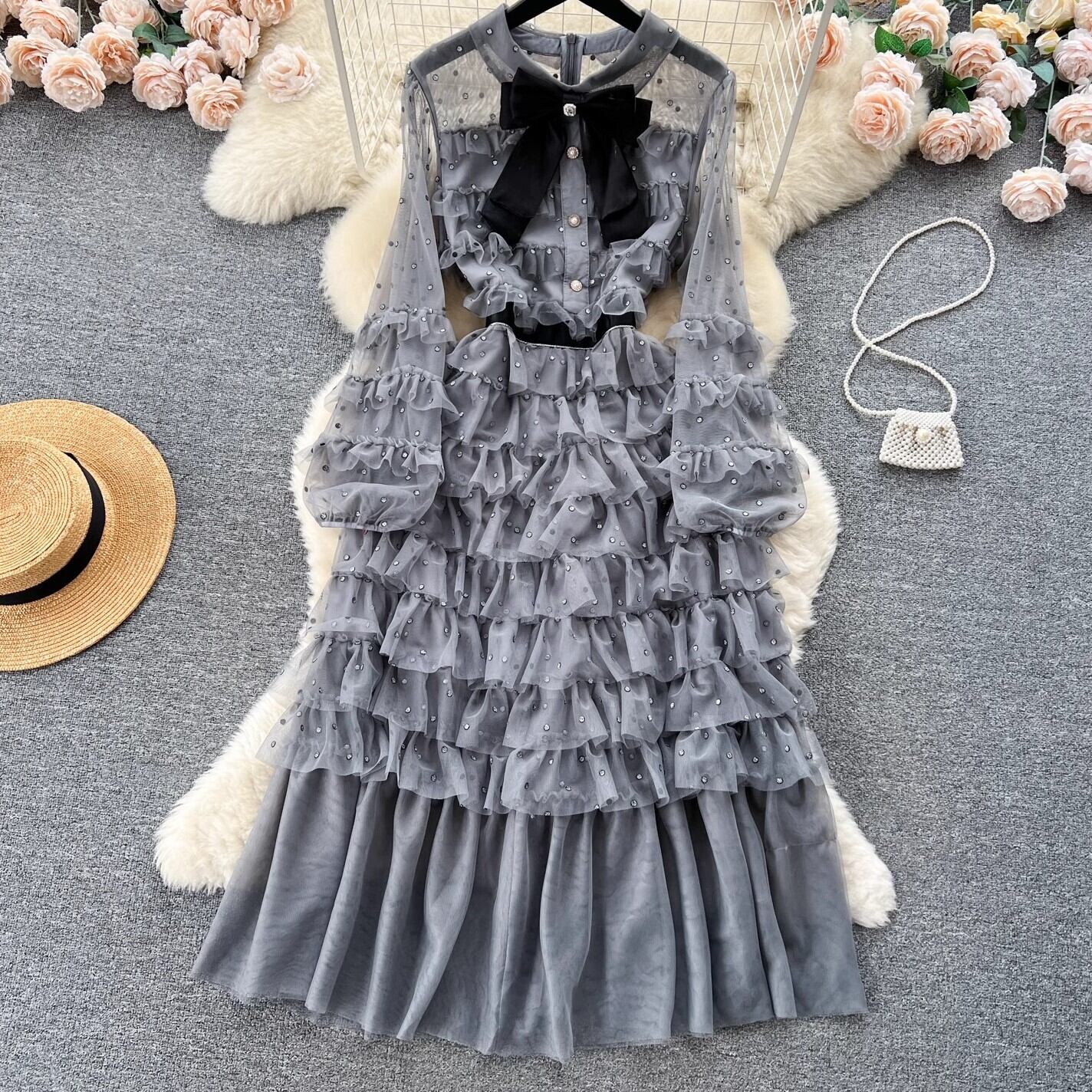 レディース ワンピース ドレス ロング 長袖 ラウンドネック りぼんタイ Aライン フリル ウエストマーク ファスナー ハイウエスト 透け感 シースルー ボタン チュール かわいい きれいめ カジュアル 上品 おしゃれ かっこいい こなれ感 エレガント 主役級 プリンセス 無地 春 夏 秋 冬 オールシーズン パーティー イベント 発表会 コンサート コーデ 楽ちん 美脚 脚長 モテ 清楚 スタイルアップ コスチューム 衣装 S M L XL 2XL ゆったり ゆる ブラック グレー 光沢 大人カラー