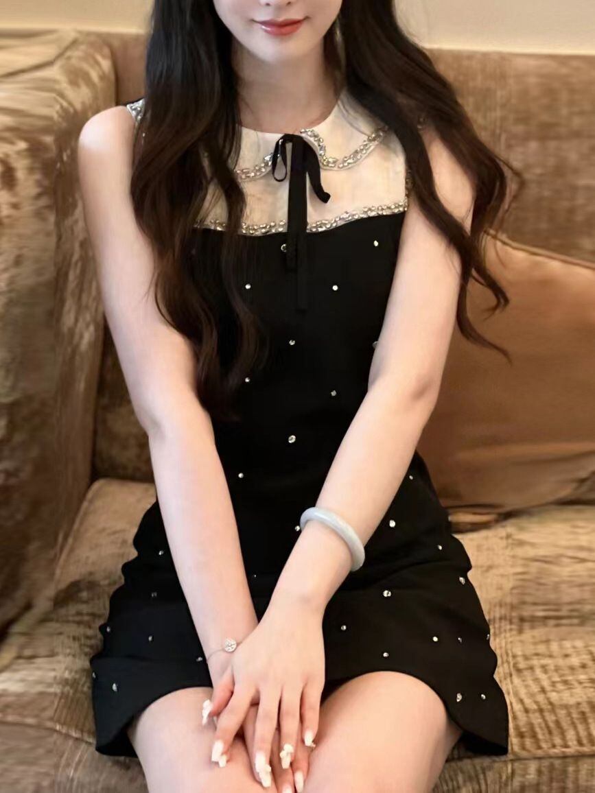 レディース ワンピース ドレス ミニ ショート 袖なし ノースリーブ ラウンドネック 丸襟 ボウタイ りぼんタイ Aライン 透け感 切り替えデザイン ビジュー かわいい 上品 おしゃれ エキゾチック ガーリー エレガント モダン 主役級 存在感 ラブリー キュート 都会的 ラグジュアリー ロマンティック セクシー 色気 シック 華やか ゴージャス 可愛い センシュアル リュクス 春 夏 パーティー ホテル クラブ キャバ ラウンジ モテ トレンド インスタ映え 高見え 格上げ S M L 黒 ブラック