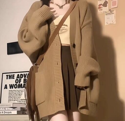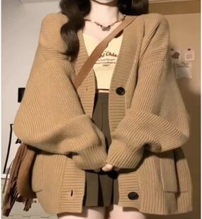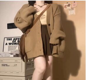 Vネックで襟なしのシンプルでありながら印象的なカーディガンは、冬のデートや休日のお出かけにも最適です。