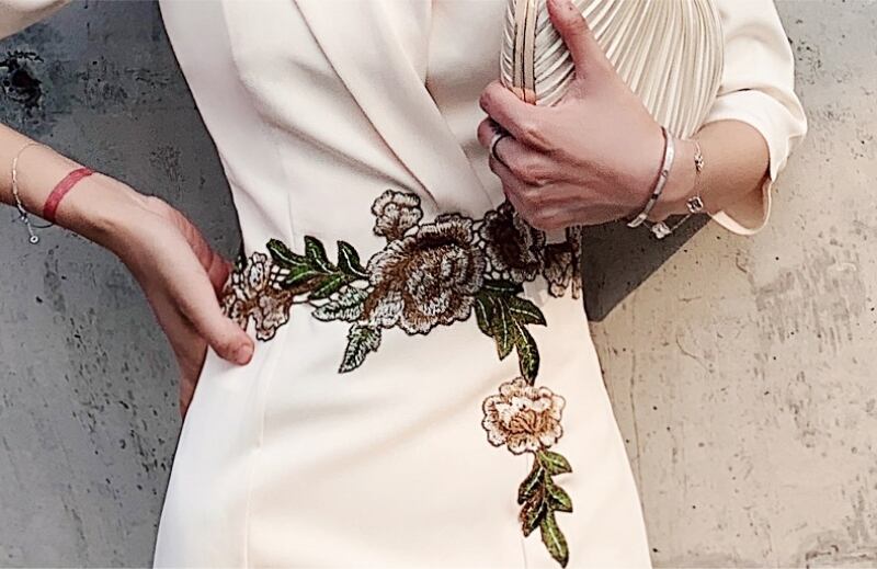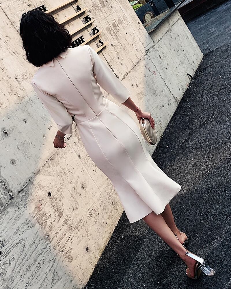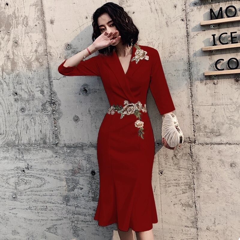 クラシカルなテーラードデザインに、フェミニンなフラワー刺繍をあしらったVネックドレス。マーメイドラインが女性らしい美しい曲線を引き立て、フレアなAラインタイプはふんわりとした優雅なシルエットを演出します。7分袖とミディ丈が大人の余裕を感じさせ、謝恩会やお呼ばれ、レストランでのひとときにもぴったり。S〜3XLまで揃った豊富なサイズ展開で、どんな体型の方にも自信と輝きを。