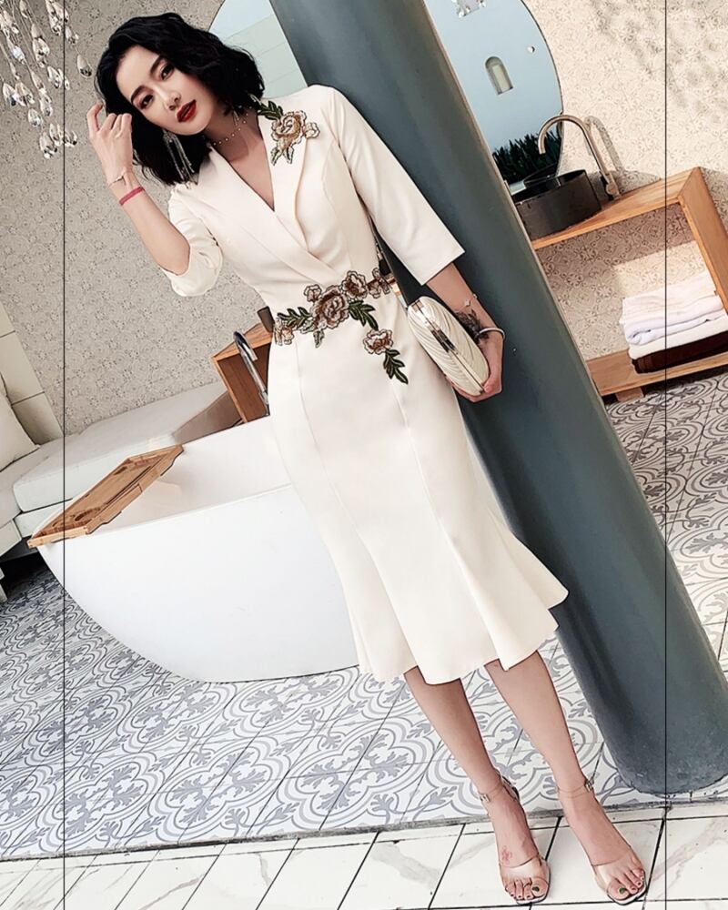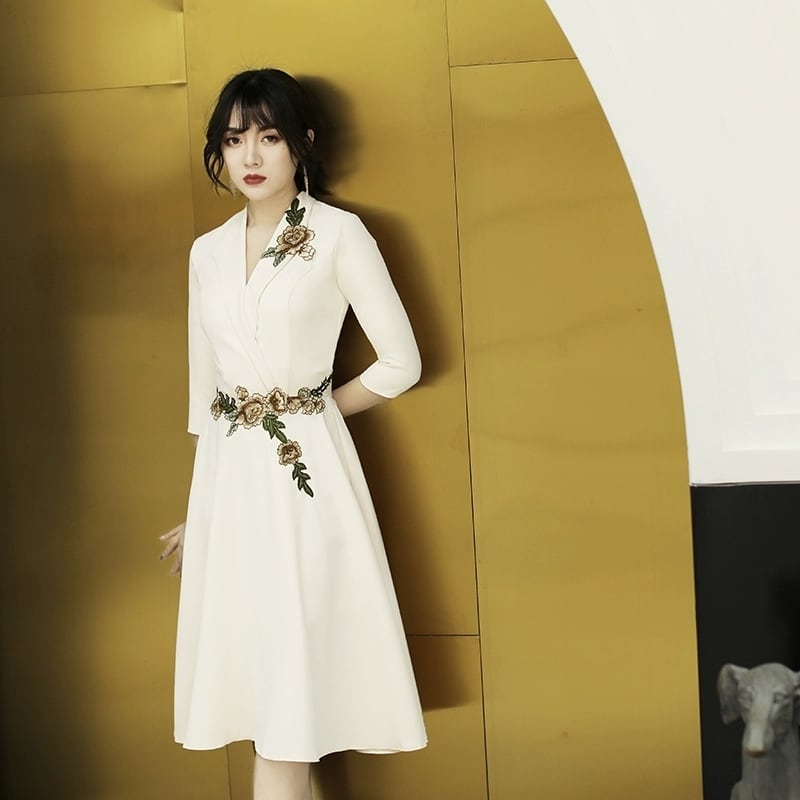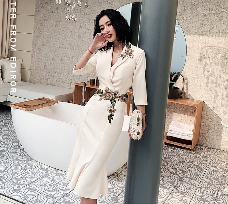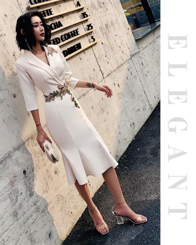 レディース ドレス イブニングドレス スーツドレス ブレザードレス テーラードドレス 膝丈 ミディ 7分袖 Vネック 襟付き フレア スリム Aライン マーメイド フォーマル フェミニン レース 刺繍 ハイウエスト コンサバ きれいめ 上品 エレガント シック ノーブル 華やか センシュアル 無地 フラワー 春 秋 謝恩会 結婚式 お呼ばれ お出かけ パーティー レストラン ホテル スタイルアップ S M L XL 2XL 3XL 大きいサイズ プラスサイズ ホワイト ブラック ワインレッド シャンパン