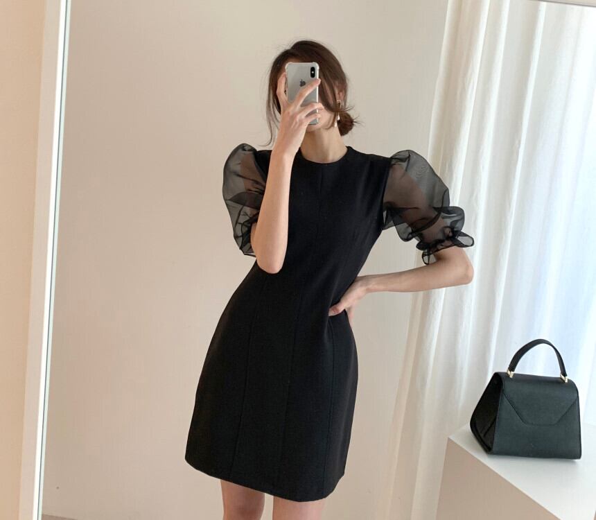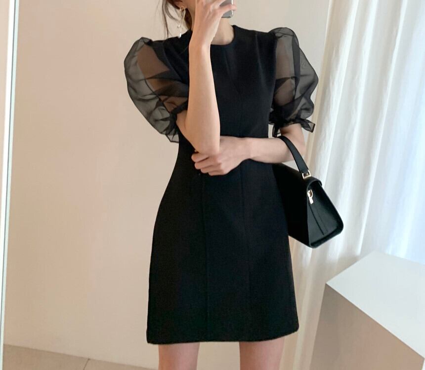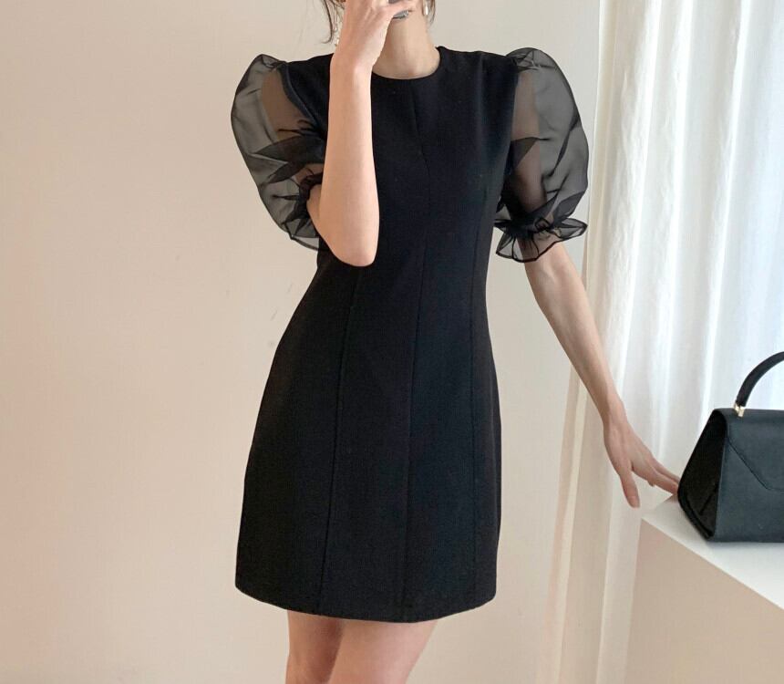 レディース ワンピース カジュアルドレス ミニ ショート 半袖 ボリューム袖 パフスリーブ バルーン袖 クルーネック スリム Aライン シースルー シアー かわいい きれいめ シンプル 上品 おしゃれ こなれ感 ガーリー エレガント モダン 抜け感 ラブリー キュート 都会的 ロマンティック シック ノーブル 可愛い クリーン センシュアル リュクス 無地 春 夏 二次会 同窓会 デート お出かけ パーティー レストラン 韓国 普段使い モテ 清楚 トレンド S M L 黒 ブラック