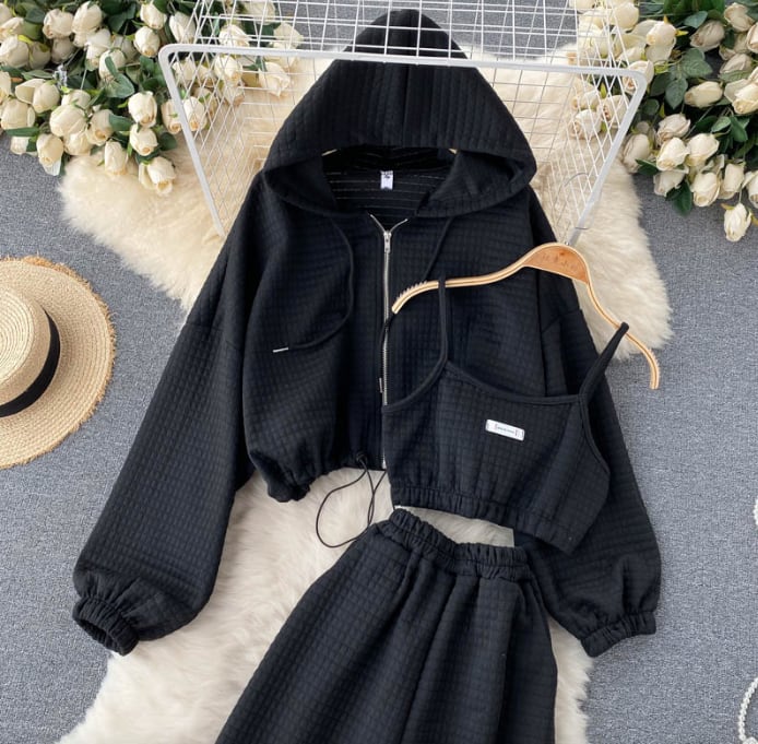 ジョガーパンツ・ジップアップパーカー・ショートキャミソール3点セットの登場です!