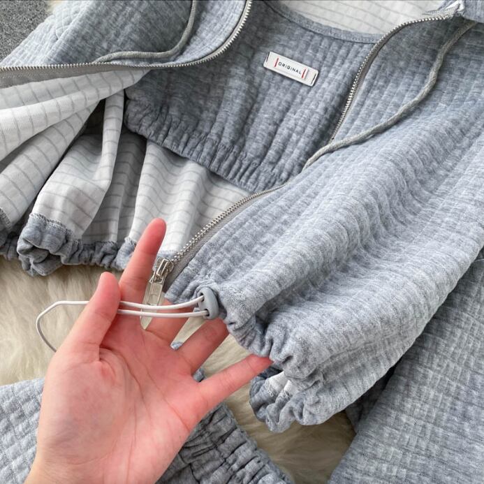 ランタンスリーブ 3点セット レディース トップス パンツ ボトムス パーカー キャミソール ショート ロング ノースリーブ 長袖 ドロップショルダー フード オーバーサイズ ストリート ファスナー ポケット ウエストゴム シンプル カジュアル かっこいい こなれ感 スポーティー 抜け感 アクティブ 春 秋 お泊まり リゾート 旅行 休日 韓国 コーデ 脚長 普段使い 着回し インスタ映え コスチューム 衣装 運動 スポーツ トレーニング ダンス フリーサイズ ホワイト ブラック グレー ダークグレー