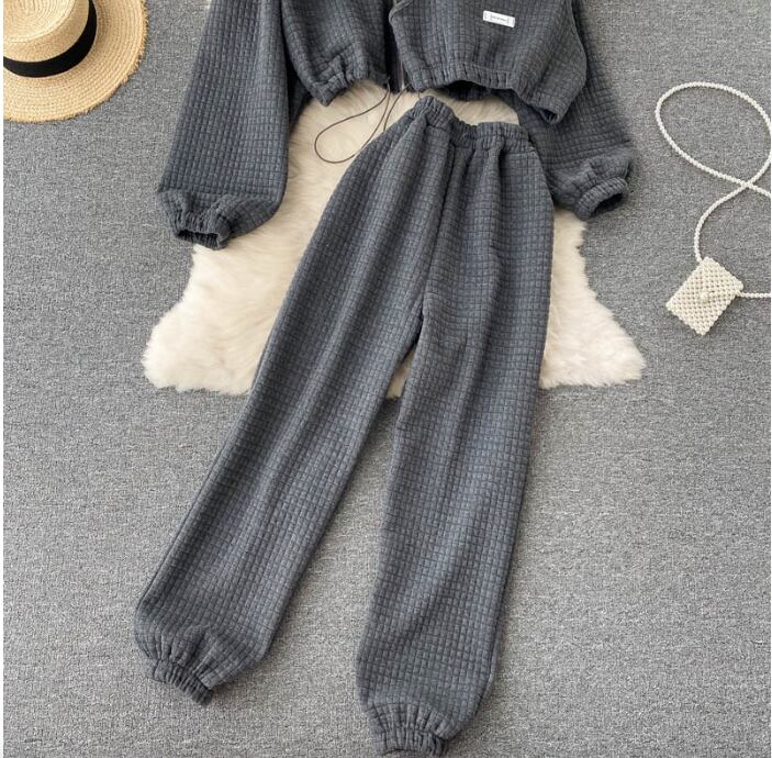 かわいいショート丈のキャミソールがセットになった、ジョガーパンツとショート丈のパーカーは、リラックスしたい休日やスポーツ、ダンスにも最適。