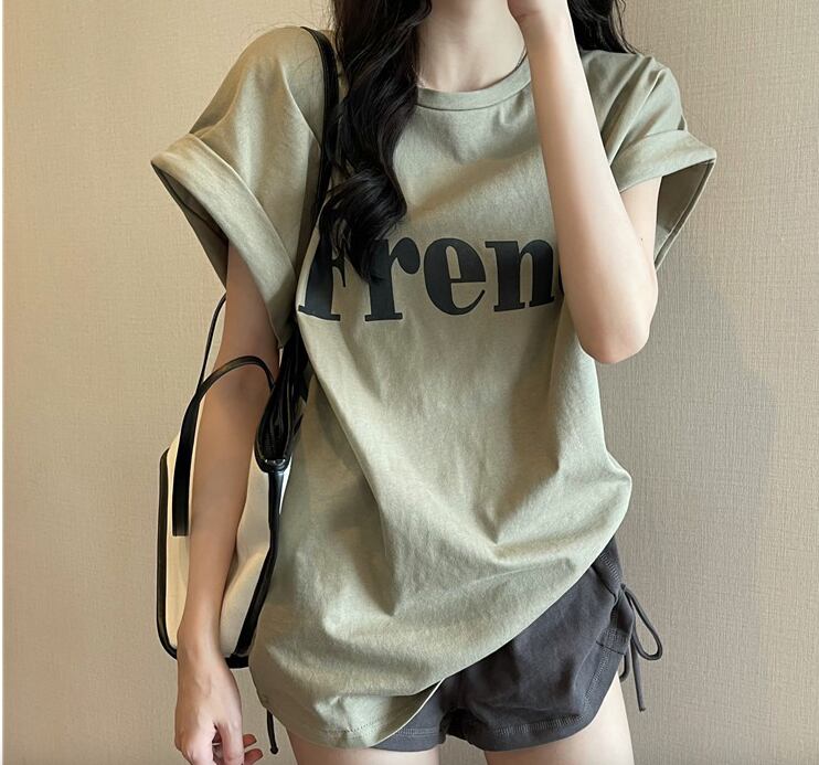 折り返し袖 レディース トップス Tシャツ フレンチスリーブ クルーネック 襟なし ノーカラー ストレート かわいい 大人可愛い きれいめ シンプル カジュアル おしゃれ レトロ こなれ感 ラフ ベーシック アメリカン アクティブ ナチュラル 爽やか 清潔感 クリーン 無地 ロゴ ワンポイント 夏 ママ 学生 通学 学校 お出かけ お泊まり アウトドア 旅行 休日 楽ちん 普段使い 着回し リラックス M L XL 2XL 大きいサイズ ゆったり 白 ホワイト 黒 ブラック カーキ 大人カラー