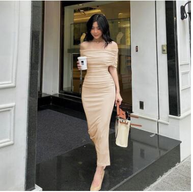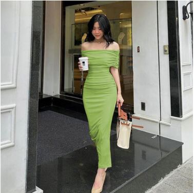 レディース ワンピース ドレス ミモレ ロング オフショルダー 襟付き タイト スリム 細身 フェミニン ボディコンシャス バックスリット ハイウエスト ギャザー 大人可愛い きれいめ シンプル 上品 おしゃれ こなれ感 エレガント 抜け感 セクシー 色気 センシュアル 無地 春 夏 誕生日 お呼ばれ パーティー イベント リゾート レストラン バカンス 演劇 舞台 モテ インスタ映え S M L XL 2XL 3XL 大きいサイズ ブラック グレー ベージュ ピンク ブルー レッド ライトグリーン