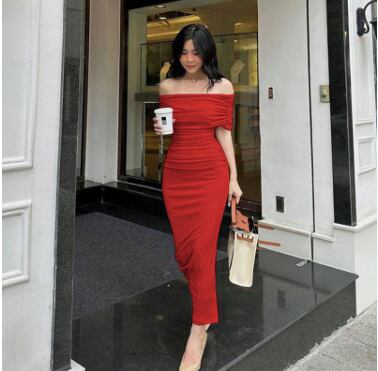 フェミニンでセクシーなスタイルを楽しむ! 大人可愛いデザインのオフショルダードレスです!