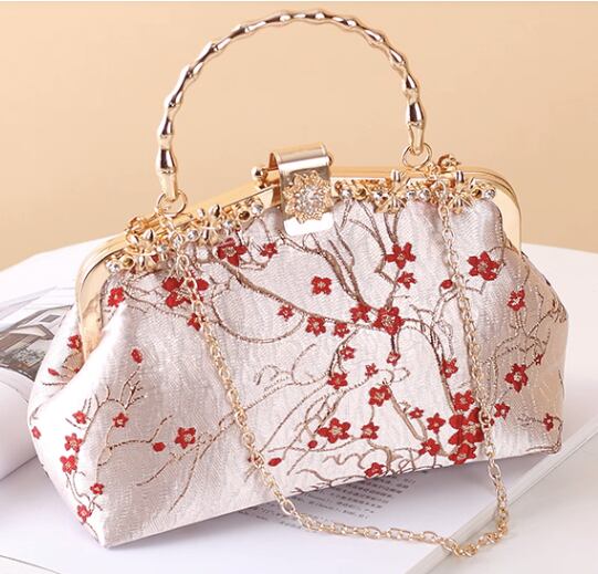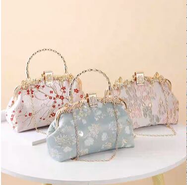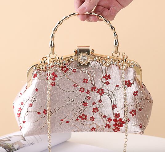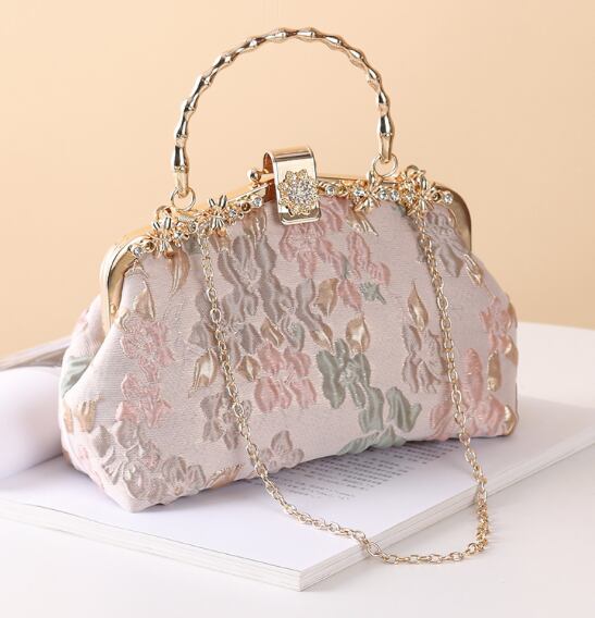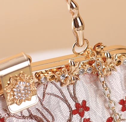 レディース バッグ ショルダー ハンドバッグ 斜めがけ 肩がけ 手持ち がま口 チェーン ストラップ ビジュー かわいい 大人可愛い きれいめ 上品 レトロ アジアン キュート エレガント 主役級 存在感 華やか ラグジュアリー 柄 花柄 フラワー ボタニカル パーティー イベント シーズンレス お食事会 オールシーズン 小さめ 緑 ピンク カラバリ 光沢