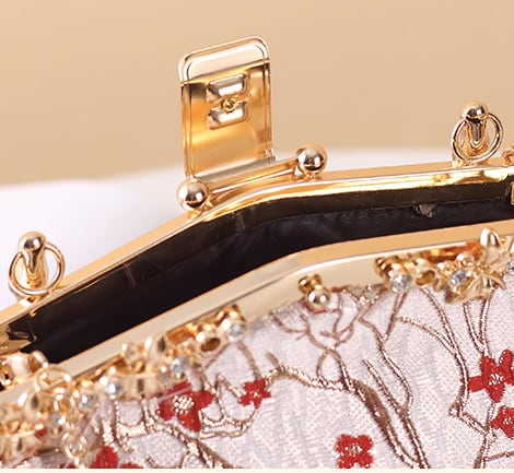 がま口のデザインとチェーンストラップが特徴的で、どんなシーンでもエレガントな印象を与えてくれます。