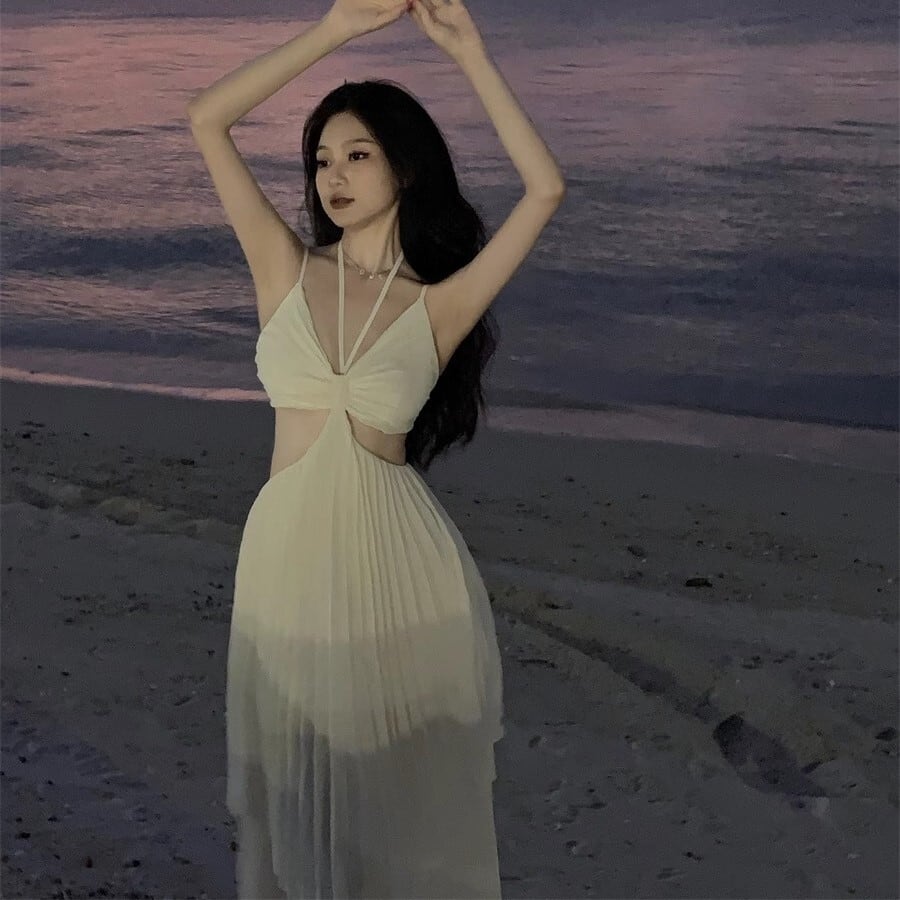 レディース ワンピース ロング ホルターネック フレア Aライン 背中開き タックプリーツ フリル かわいい 大人可愛い きれいめ シンプル カジュアル 上品 おしゃれ かっこいい レトロ アジアン こなれ感 ラフ 個性的 クール モード系 エレガント 抜け感 ワイルド セクシー 色気 無地 夏 デート お出かけ リゾート 旅行 海 プール ビーチ 休日 バカンス コーデ 楽ちん 美脚 脚長 モテ 清楚 スタイルアップ 肌見せ コスチューム 涼しい S M L ホワイト ピンク アプリコット パープル