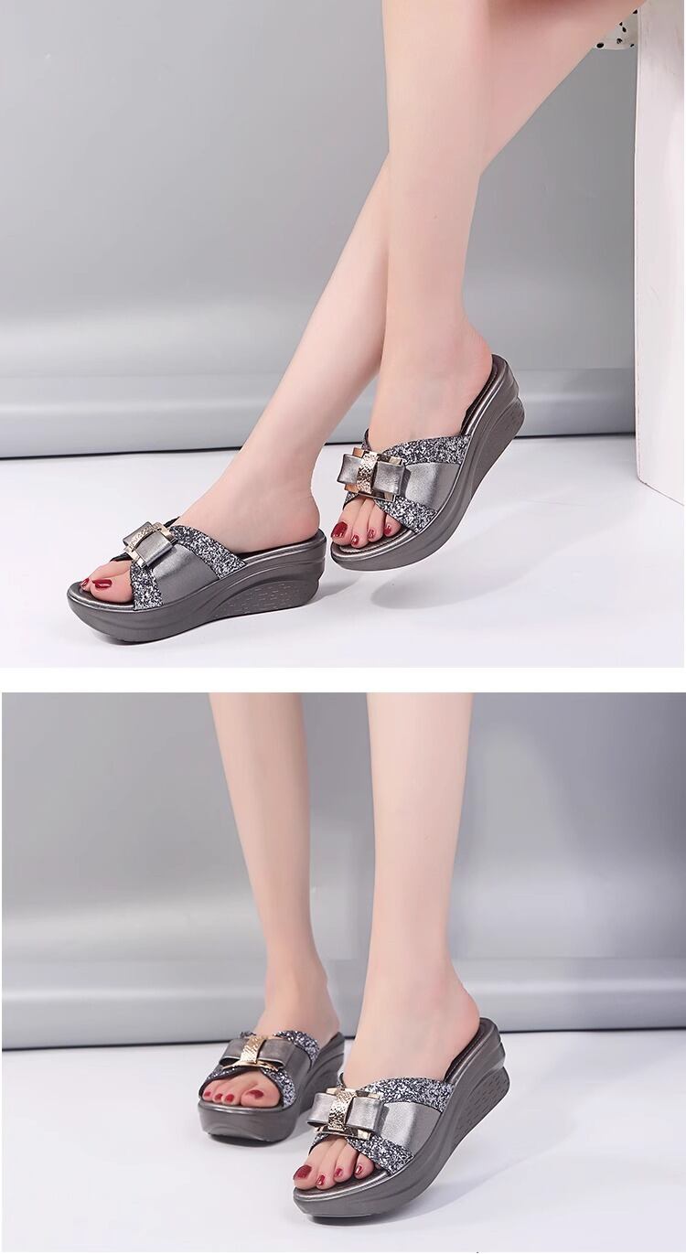 華やかでエレガントな足元を演出する、レディースサンダルです!5cmの厚底とウェッジソールが、美脚効果をもたらし、脚長効果もバッチリ。シンプルでありながら、カジュアルからきれいめスタイルまで幅広くコーディネートできるデザインが魅力です。