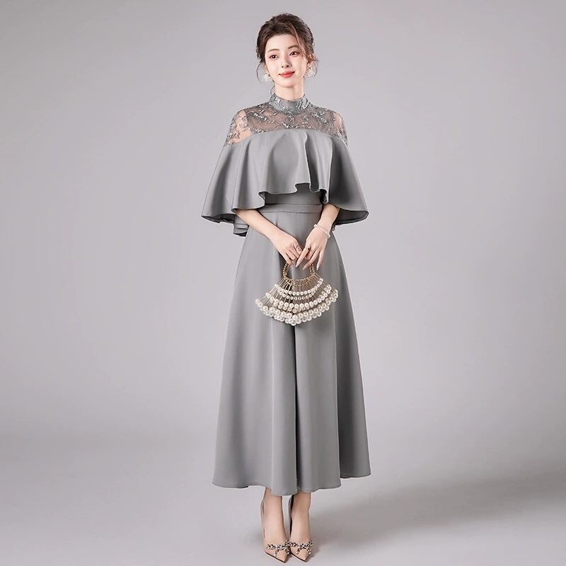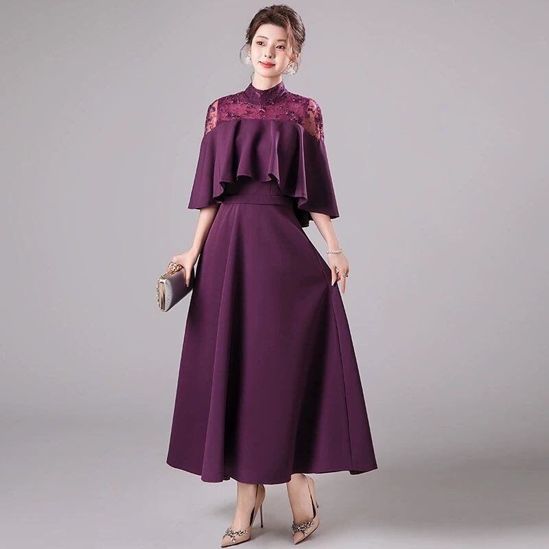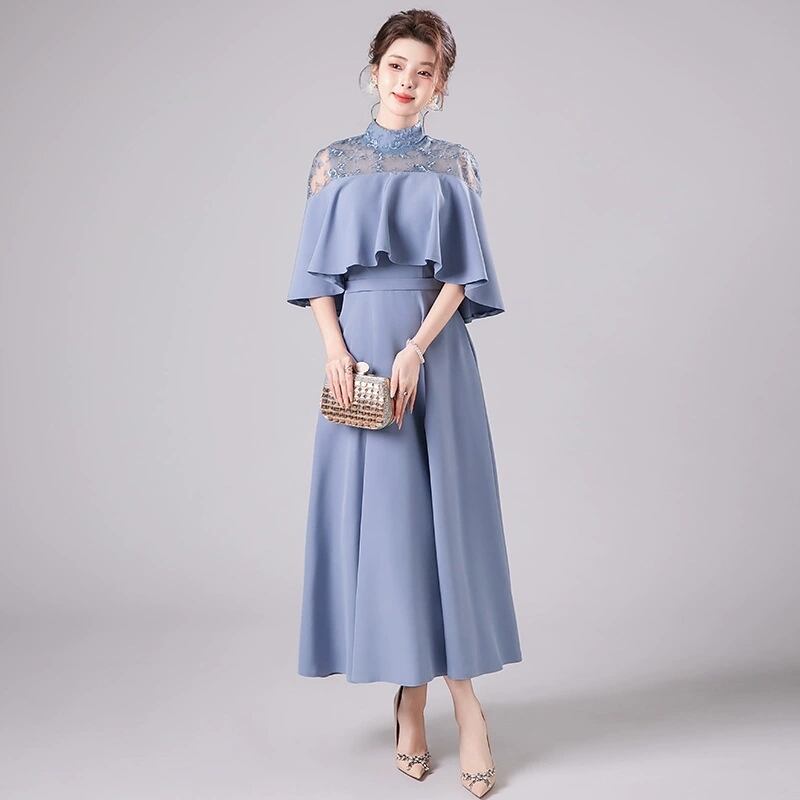 レディース ドレス ウェディング パーティー 結婚式 披露宴 演奏会 フォーマル 謝恩会 ロング 5分袖 ポンチョスリーブ ハイネック ボトルネック フレア Aライン イブニング カジュアル 刺繍 切り替えデザイン ハイウエスト シースルー シアー きれいめ シンプル 大人可愛い 上品 キュート エレガント 抜け感 清楚 シック ノーブル 爽やか センシュアル 花柄 フラワー 体型カバー 二の腕カバー 春 夏 秋 小さい 大きい ぽっちゃり プラスサイズ XS S M L XL 2XL 3XL 10色展開