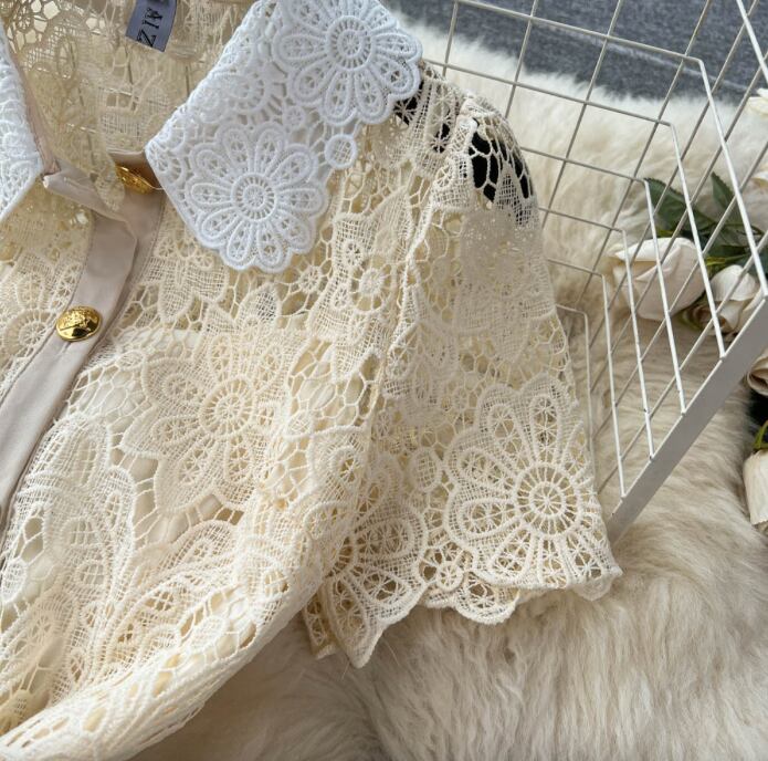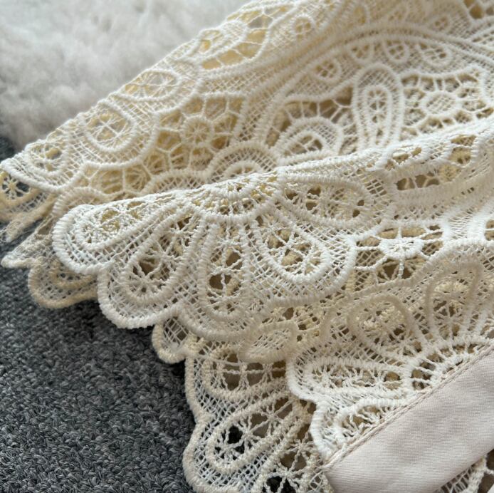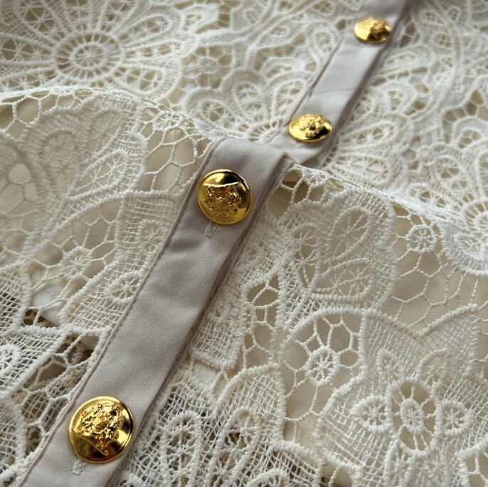 飾りボタンや総レースの透け感が、クラシカルな魅力をより一層引き立てます。