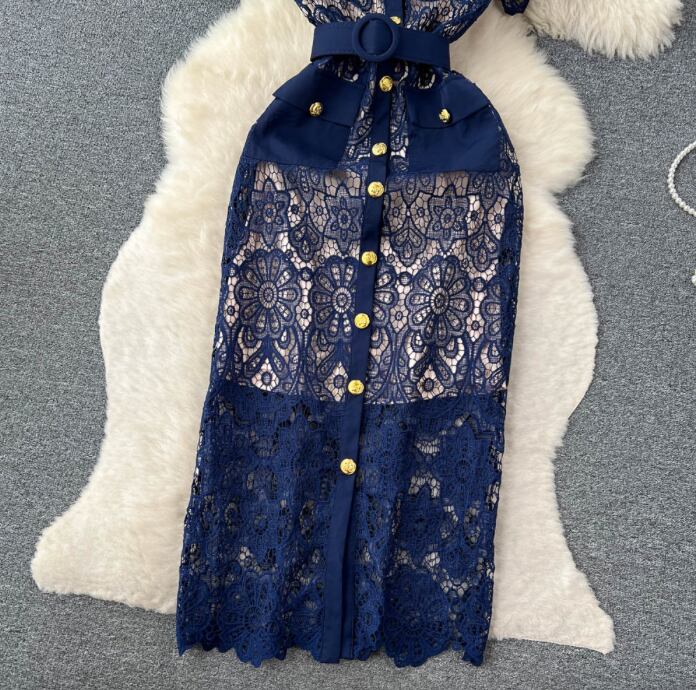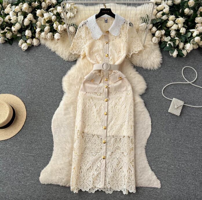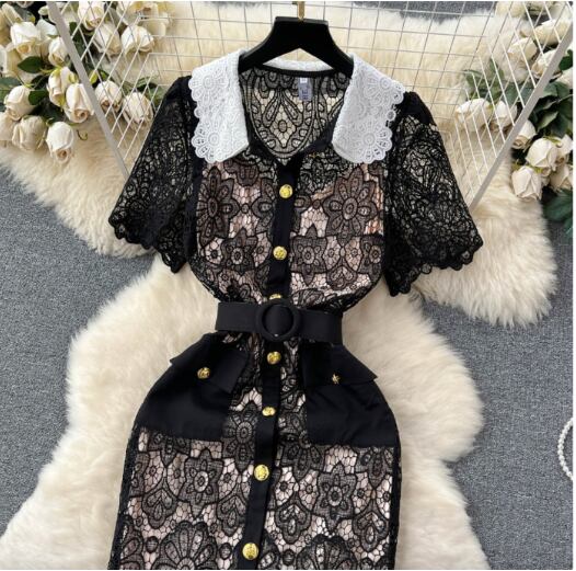 レディース ワンピース 膝下 ミモレ ミディ ミドル 半袖 襟付き レース襟 タイト ストレート フェミニン Xライン レース 刺繍 ベルト ウエストマーク ポケット ハイウエスト 透け感 ボタン 総レース 飾りボタン ベルト付き かわいい 大人可愛い 上品 レトロ ガーリー ラブリー キュート クラシカル 爽やか 華やか 可愛い 花柄 フラワー 夏 誕生日 お呼ばれ デート お出かけ 休日 ショッピング モテ 清楚 裏地付き S M L XL 2XL 大きいサイズ 黒 ベージュ ダークブルー