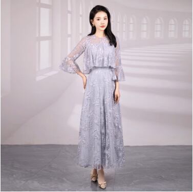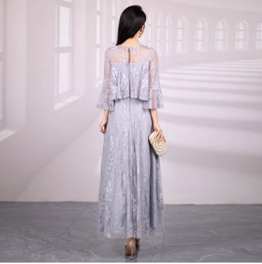 レディース ワンピース ドレス ロング アンクル丈 7分袖 フレアスリーブ フリル袖 ベルスリーブ ラウンドネック 襟なし セミフレア 切り替え フェミニン プリーツ レース 刺繍 ウエストマーク ハイウエスト 透け感 シースルー 切り替えデザイン ドッキング 総レース シアー きれいめ シンプル 上品 エレガント クラシカル 花柄 フラワー 総柄 夏 お呼ばれ ママ お出かけ XS S M L XL 2XL 大きいサイズ 白 ホワイト 黒 ブラック グレー ネイビーブルー