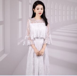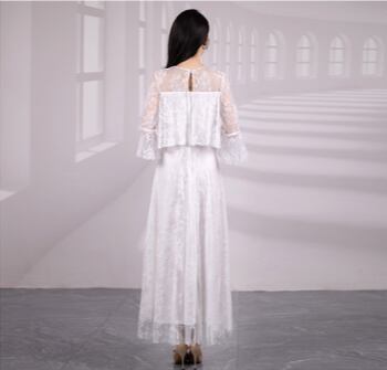 繊細な総レースと美しいプリーツが魅力の、ロング丈ワンピース。