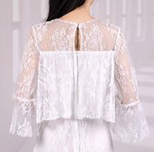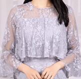 ラウンドネックのシンプルな首元とシースルーの透け感が絶妙に調和し、クラシカルでありながら涼しげな印象に。