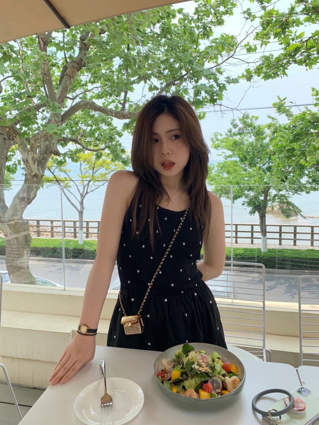 洗練された大人の魅力を纏う、ドット柄ロングサンドレス。春夏の陽射しに映える、上品でフェミニンな一着が登場しました。柔らかなフレアラインが美しく揺れるAラインシルエットに、ラウンドネックの優雅なカッティング。背中を美しく魅せるオープンバックと繊細なバックリボンが、さりげない色香を添えます。機能性にもこだわり、便利なポケットとスタイルアップを叶えるハイウエスト設計を採用。シックなブラックにドット柄をあしらったデザインは、リゾートから街歩きまで幅広いシーンで活躍します。 休日のひとときに、優雅な存在感を演出する一枚です。