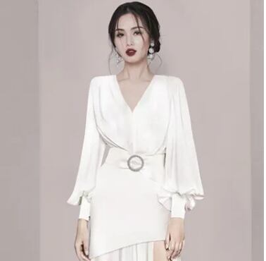 ホワイトカラーが放つ洗練されたリュクス感で、大人の女性の魅力を引き立てる一着です。