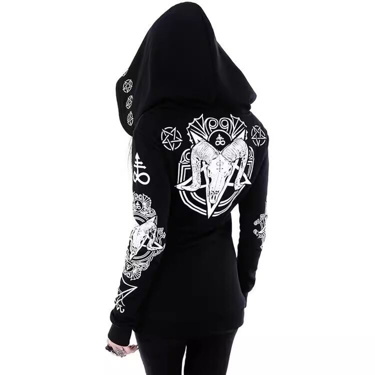 レディース パーカー 長袖 フード スリム 細身 ファスナー ポケット 前開き カジュアル おしゃれ かっこいい メンズライク ボーイッシュ スポーティー 個性的 クール モード系 モダン 主役級 存在感 ゴシック ワイルド ゴス メタル パンク ロック プリント 春 秋 お出かけ イベント 休日 ショッピング ライブ フェス コーデ 楽ちん 暖かい 普段使い インスタ映え コスチューム 衣装 S M L XL 2XL 3XL 4XL 5XL 大きいサイズ プラスサイズ 黒 ブラック ベーシックカラー