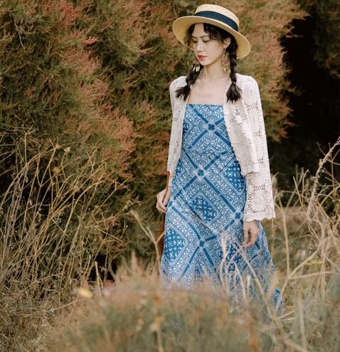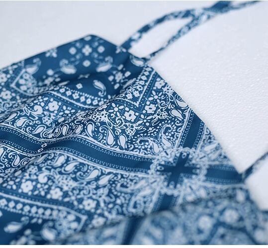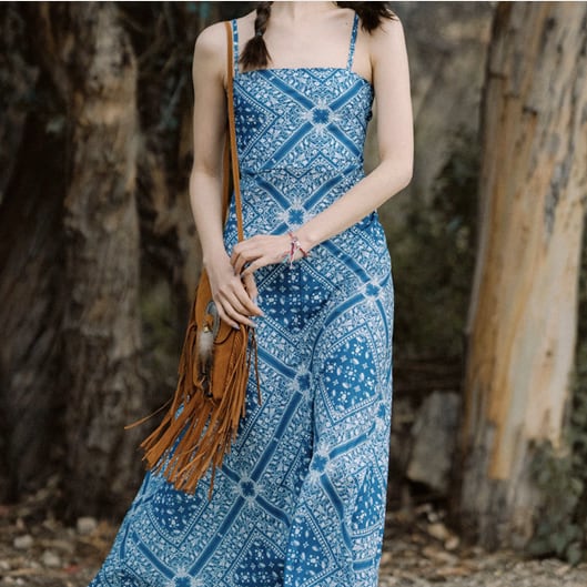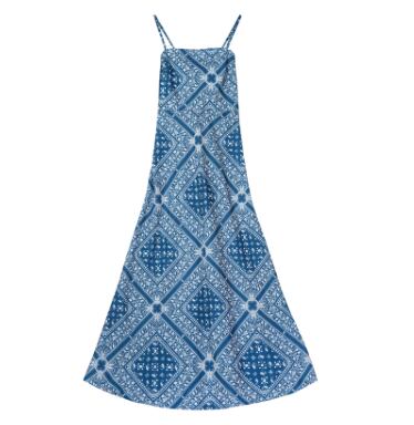 レディース ワンピース 膝下 ミモレ ミディ ミドル 袖なし キャミソール スクエアネック 襟なし セミフレア Aライン 背中開き フェミニン フィット&フレア バックレス Vバック バックリボン バックコンシャス ハイウエスト 編み込み 異国風 かわいい 大人可愛い カジュアル おしゃれ こなれ感 ラフ ガーリー 抜け感 カントリー 可愛い ボタニカル ペイズリー バンダナ柄 夏 デート お出かけ リゾート 旅行 脚長 モテ 肌見せ 涼しい S M L ブルー