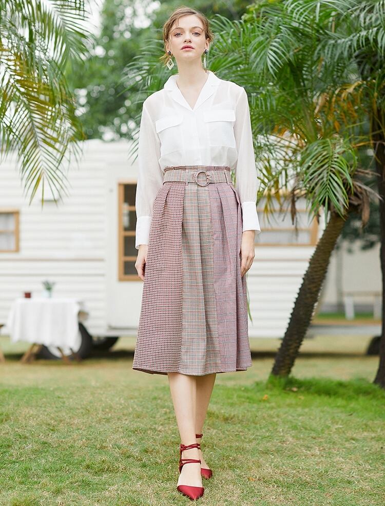 レディース スカート ボトムス タックスカート 膝下 ミモレ ミディ Aライン フェミニン タック ベルト ウエストマーク ハイウエスト かわいい 大人可愛い きれいめ 上品 おしゃれ レトロ こなれ感 ガーリー エレガント 抜け感 かっちり キュート クラシカル 学生風 プレッピー ロマンティック シック ノーブル 爽やか クリーン エフォートレス トラッド センシュアル リュクス グレンチェック 春 夏 秋 ロングシーズン 美脚 脚長 普段使い モテ 清楚 トレンド スタイルアップ S M レッド