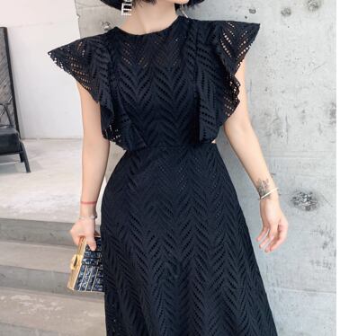 透かし編みの総柄が夏らしい抜け感を演出しながら、柔らかな広がりが優雅な揺れ感を生み出します。