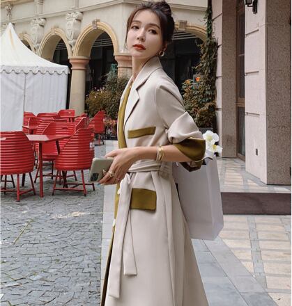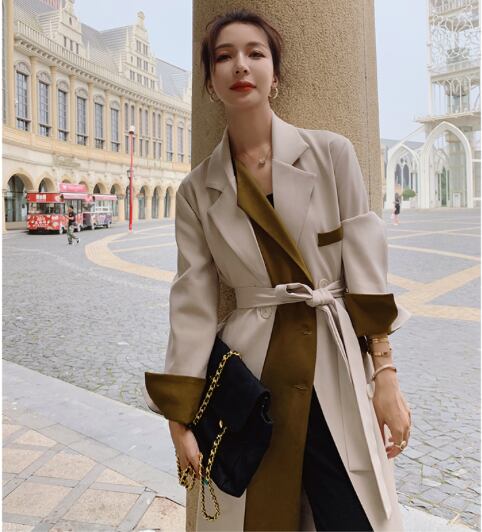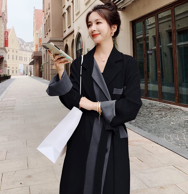 レディース コート 上着 膝下 ミモレ ミディ 長袖 テーラードカラー 襟付き タイト スリム ストレート Iライン ドッキング ベルト ウエストマーク 前開き 異国風 ボタン 切り替えデザイン バイカラー 配色 ドッキング アシンメトリー ベルト付き きれいめ おしゃれ こなれ感 マニッシュ クール モード系 エレガント モダン クラシカル 無地 春 秋 お出かけ 休日 ショッピング 韓国 オルチャン コーデ スタイルアップ S M L XL 黒 オフホワイト
