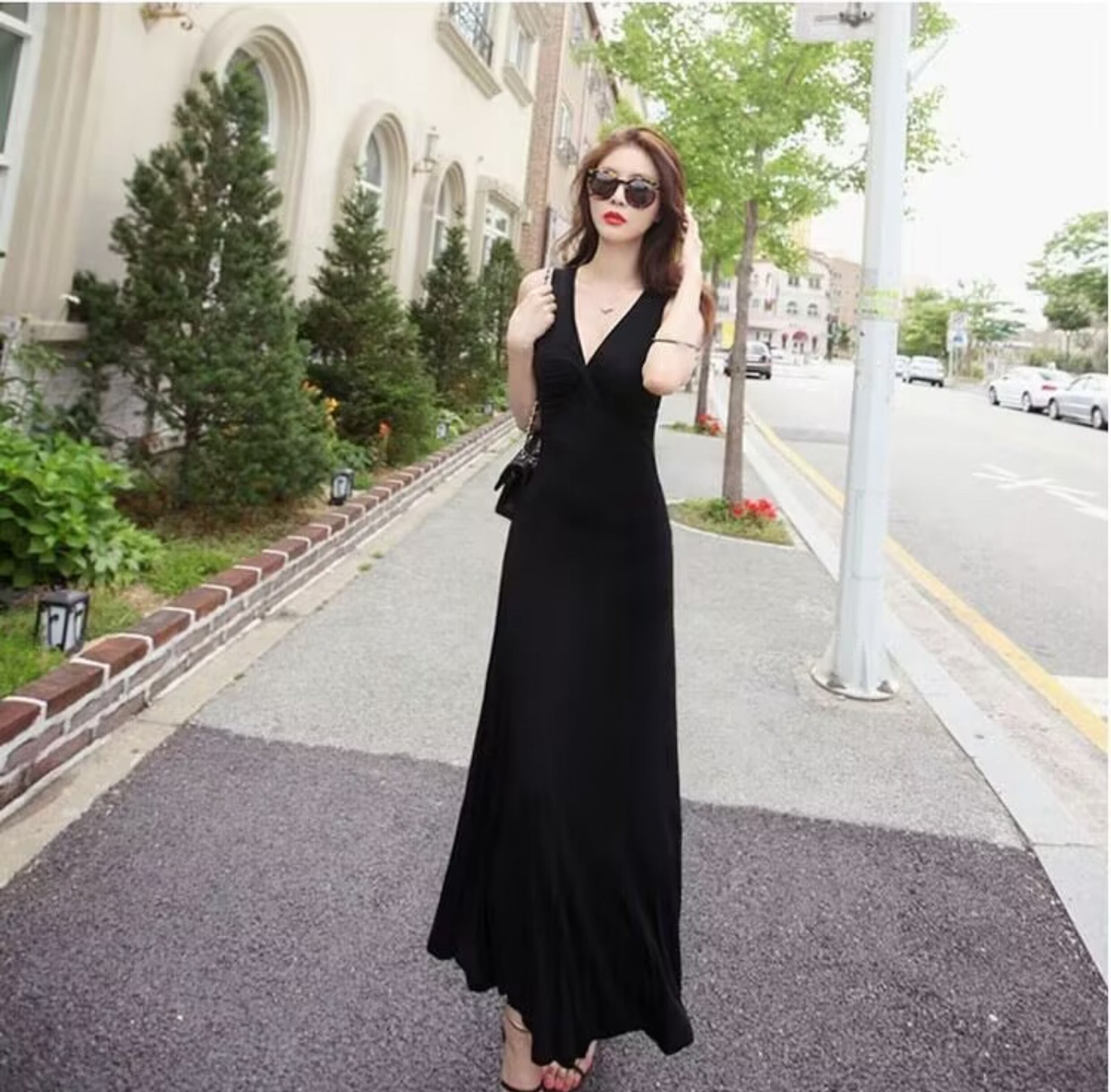 レディース ワンピース 膝下 ロング ノースリーブ Vネック フレア かわいい 大人可愛い きれいめ シンプル カジュアル おしゃれ かっこいい こなれ感 個性的 クール エレガント 主役級 存在感 ラブリー キュート クラシカル ベーシック ロマンティック ナチュラル 爽やか 華やか 可愛い 春 夏 ロングシーズン 学園祭 同窓会 お呼ばれ 通学 デート お出かけ アウトドア キャンプ パーティー イベント 女子会 休日 バカンス ショッピング ライブ S M L XL ブラック グレー