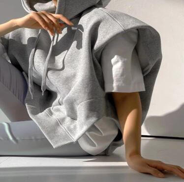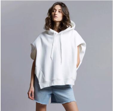 レディース トップス パーカー 袖なし フレンチスリーブ 襟なし フード ワイド ストリート サイドスリット アメカジ スウェット シンプル カジュアル かっこいい こなれ感 ラフ メンズライク マニッシュ ボーイッシュ スポーティー 抜け感 カレッジ風 学生風 無地 夏 学生 部活 ジム 公園 休日 フェス 体型カバー 普段使い 着回し レイヤード トレンド 流行 定番 運動 スポーツ トレーニング ダンス リラックス S M ゆったり ゆる 白 ホワイト 黒 ブラック グレー
